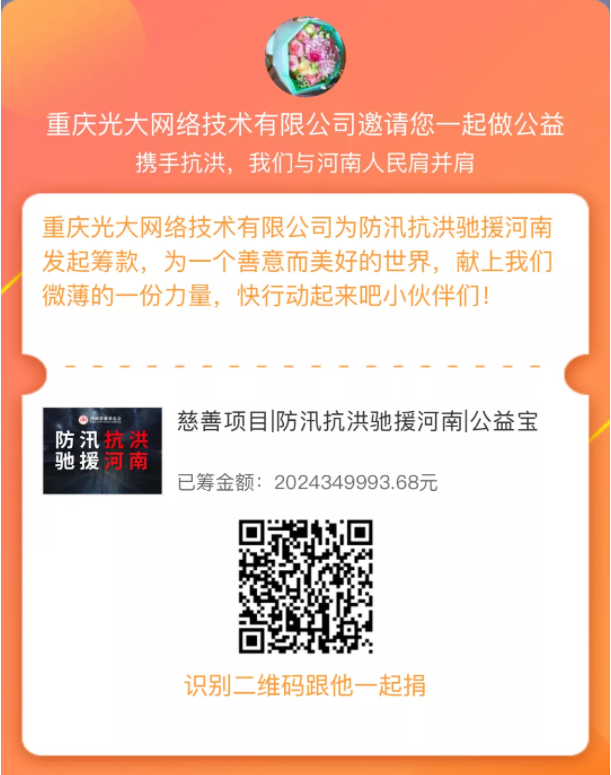 此外,光大公司還發(fā)起針對河南抗洪募捐倡議,號召全體光大人積極獻出愛心,伸出援助之手,與河南人民風(fēng)雨同舟,共渡難關(guān)!