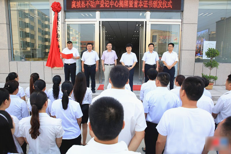 8月25日,我縣舉行不動產(chǎn)登記中心揭牌暨首本證書頒發(fā)儀式,商丘市國土資源局局長郭幸生、市不動產(chǎn)登記局副局長劉學禮、縣長白超、副縣長崔玉峰、縣領(lǐng)導(dǎo)周熠林及縣國土局局長杭明等出席儀式。